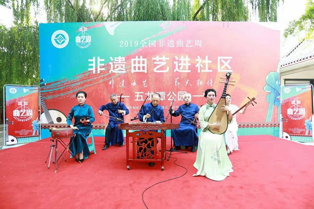Folk artists stage a performance at the opening ceremony of the 2019 National Intangible Cultural Heritage Quyi Week on Sep 6 in Jinan, Shandong province. [Photo/cnr.cn]