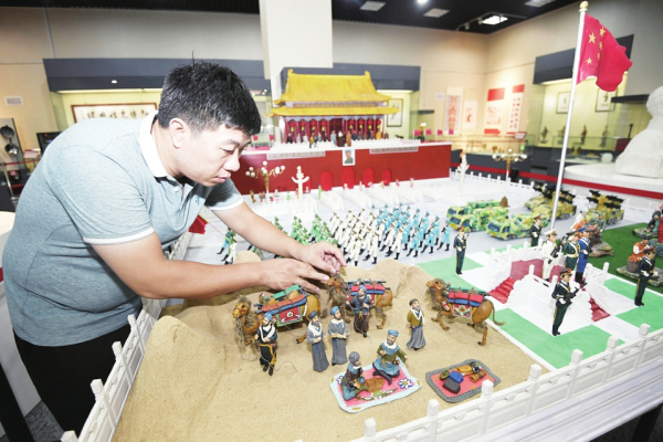 Seven artists in Jinan, capital of East China's Shandong province jointly designed a set of large dough models to celebrate the 70th anniversary of the founding of the People's Republic of China.