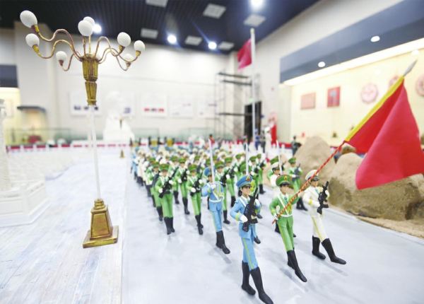 The set of dough models, 3.65 meters long and 2.38 meters wide, consists of six parts and involves 186 distinctive characters, three camels and six missile launching trucks. [Photo/dzwww.com]