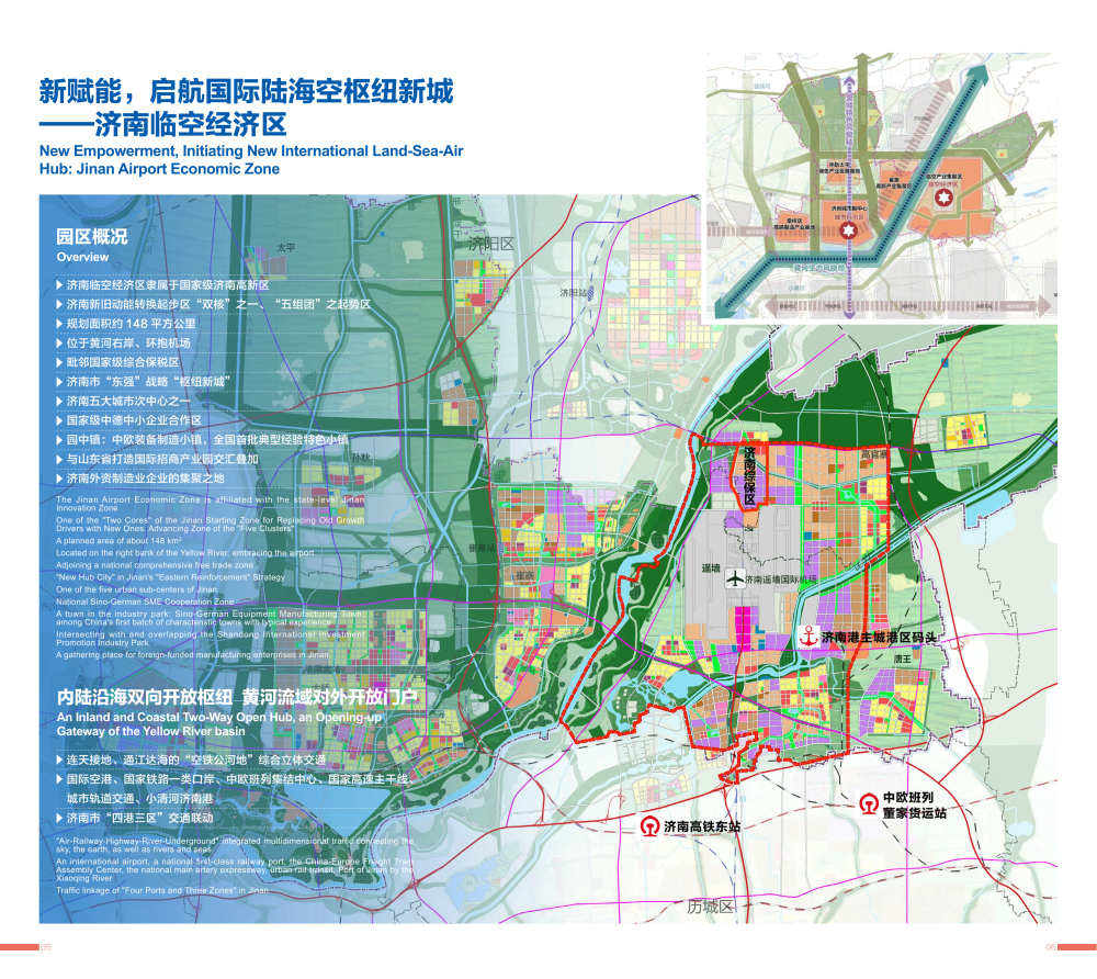 Jinan Airport Economic Zone is affiliated to Jinan Innovation Zone. It is located on the right bank of the Yellow River and covers an area of 148 square kilometers. It also serves as the National Sino-German SME Cooperation Zone, with the Sino-German Equipment Manufacturing Town being located in the zone. It is a gathering place for foreign-funded manufacturing enterprises in Jinan.