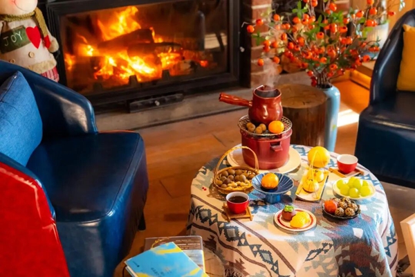 Stoves warm the air, with tangerines, chestnuts, and other treats resting on top. [Photo/WeChat account: sdta12301]