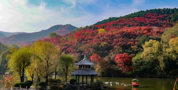 In the golden autumn, the mountains come alive with breathtaking red leaves at Hongye Valley, opportunities for cultural exploration at Lingyan Temple, and camping amidst picturesque landscapes.