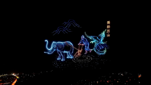 Drones illustrate the story of Emperor Shun at Lishan Mountain (the ancient name of Qianfo Mountain), blending ancient legends with modern technology. [Photo/Haibao News]