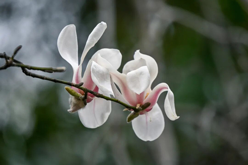 Magnolia buds, with white petals tinged with purple at the base, prepare to bloom at Baotu Spring Park. [Photo/WeChat account: jnslyj]