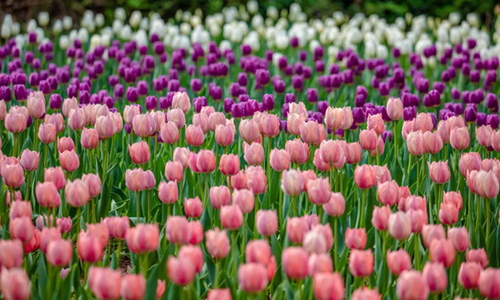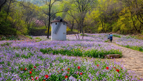 Tulips in a brilliant array of colors paint a stunning portrait of spring at the Red Leaf Valley scenic area in Jinan. [Photo/WeChat account: jnhygqh]