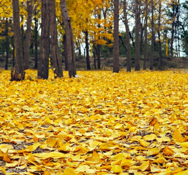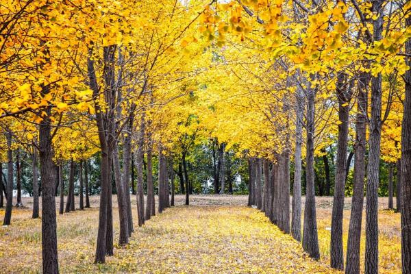 Stretching 12 kilometers and home to around 200,000 trees, the forest turns stunning gold from late October to late November, with leaves fluttering to the ground and carpeting the paths.