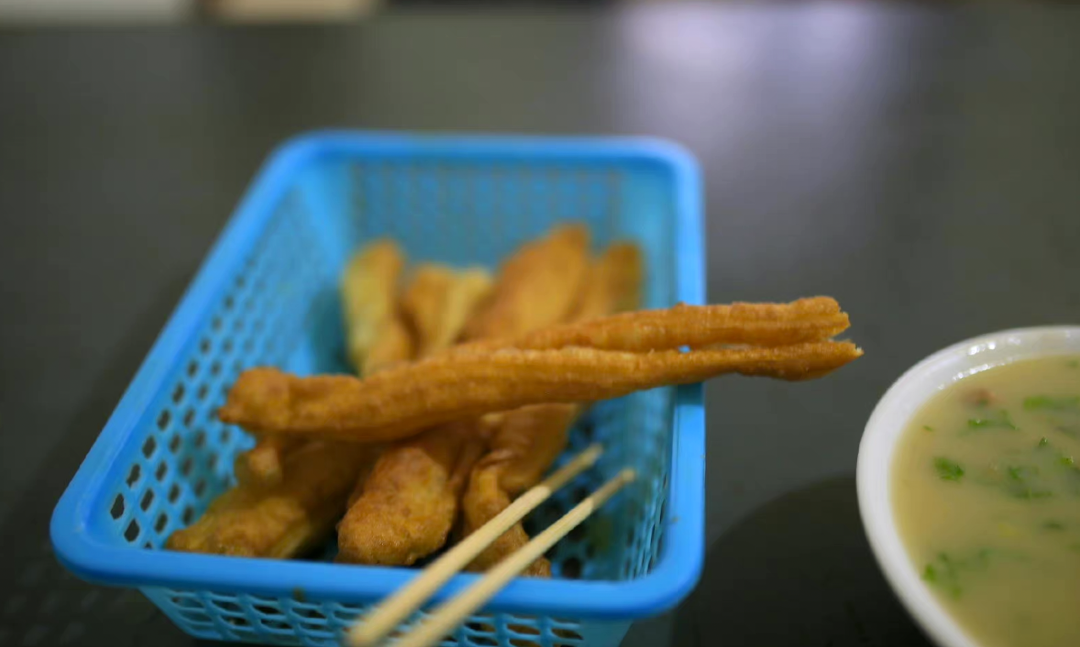 Zhang's Fried Bread Stick is a time-honored shop in Jinan. Early in the morning, diners stand in a long queue to buy the fried bread sticks. Tianmo porridge is also available at the shop. It is a type of salty porridge made with millet and a must-try Jinan breakfast. The mixture with thin sheets of bean curds, peanuts, and vegetables makes it even more unforgettable.