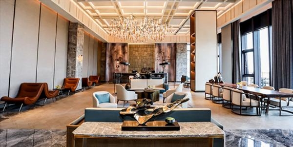 Dining options cater to a variety of tastes. The Chinese restaurant on the third floor serves authentic Shandong cuisine and fresh seafood, while the buffet restaurant in the shared lobby offers both international flavors and local delicacies. The lobby also has a stylish lounge, with a bar area, a communal long table, and a tranquil corner for discussions.