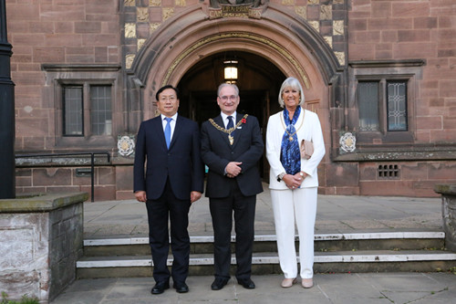 Wang met the leaders of four sister cities of Jinan – UK's Salford and Coventry, Spain's Toledo, and Denmark's Sonderborg. In Coventry, he signed a cooperation deal with John Blundell, the city's Lord Mayor, to promote mutual exchanges on cultural creation and intelligent manufacturing industries.