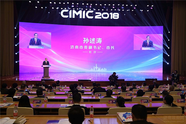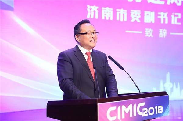 Sun Shu, mayor of Jinan city, addresses the 2018 China Intelligent Manufacturing International Conference & 13th China on Nov 2. [Photo/jinan.gov.cn]