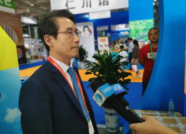 Park Jin-woong, consul general of South Korea in Qingdao, shares his enthusiasm during a media interview in Jinan at the 2019 East Asia Exposition. [Photo/ijinan.jinannews.cn]