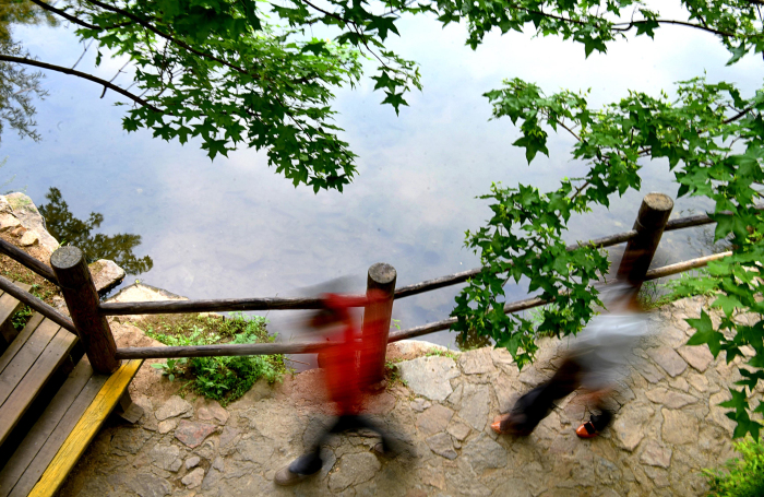 Visitors take a tour at Jiuru Mountain Scenic Spot, Jinan on May 11. [Photo/Xinhua]