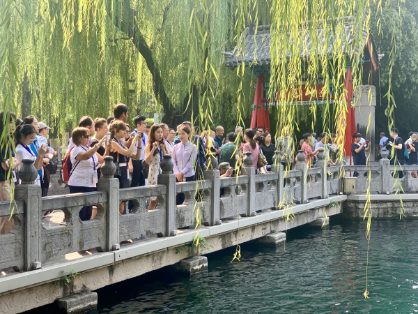 Foreign journalists take photos at Baotu Spring Park, the most famous spring park in Jinan. [Photo provided to chinadaily.com.cn]