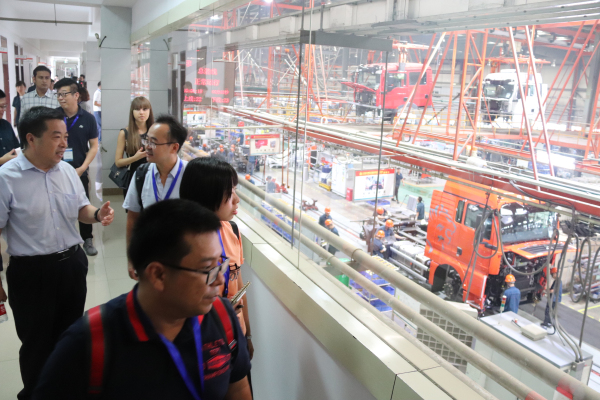 A group of journalists from overseas media outlets paid a visit to China National Heavy Duty Truck Group Co in Jinan, East China's Shandong province on Sept 10 in order to learn more about the progress of the city's heavy truck manufacturing industry.