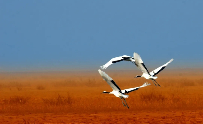 Covering 153,000 hectares, the Yellow River Estuary Ecotourism Area is a popular tourist destination where visitors can take in the magical wetlands landscape and watch the birds. [Photo/WeChat account: jnslyj]