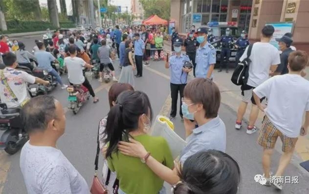 Parents encourage students ahead of the examination on June 7 in Jinan, Shandong province. [Photo/Jinan Daily]