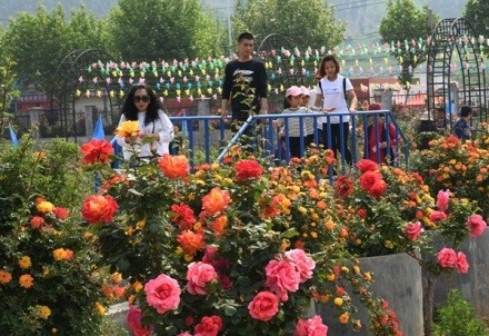 Tourists admire roses in Pingyin county, Jinan, in early summer. [Photo/IC]