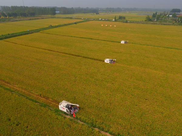 File photo shows Wujiapu subdistrict in Jinan harvest rice [photo/cfp]