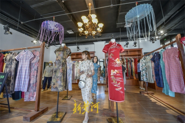 Visitors admire qipao, the traditional Chinese dress for women at Huayi Brothers Movie Town. [Photo/jinantimes.com]