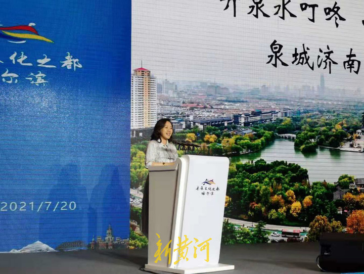 Zhang Rong, deputy secretary-general of the Jinan municipal government, delivers a keynote speech at a forum on the construction of Culture City of East Asia on July 20. [Photo/jinantimes.com.cn]