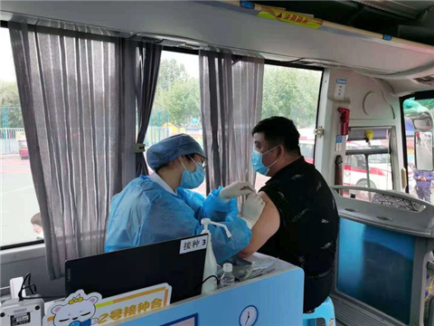 A resident gets vaccinated on a mobile bus in Tianqiao district, Jinan, Shandong province on April 24. [Photo/dzwww.com]