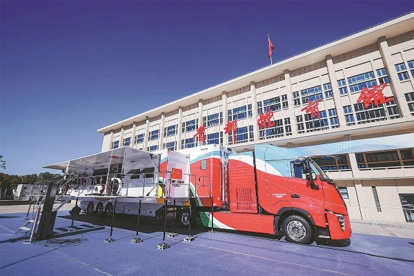 A hydrogen-powered ski-waxing truck made by Sinotruk. [Photo/China Daily]