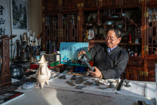 Liu Degong, an inheritor of the black pottery technique [Photo/dzwww.com]