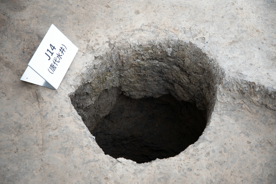 Remains of a water well from the Tang Dynasty (618-907), unearthed at the southwest site at Daming Lake. [Photo by Xu Zhou for chinadaily.com.cn]