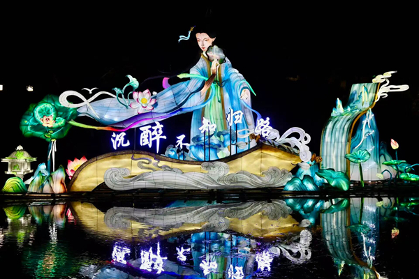 A poet Li Qingzhao-themed (1084–1155 AD) lantern lights up the Jinan World's Best Spring Scenic Area, blending heritage with festive tradition. [Photo/WeChat account: quanyoujinan]